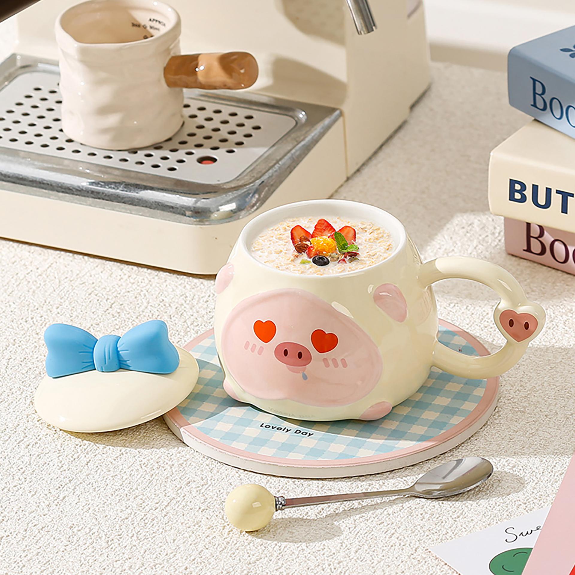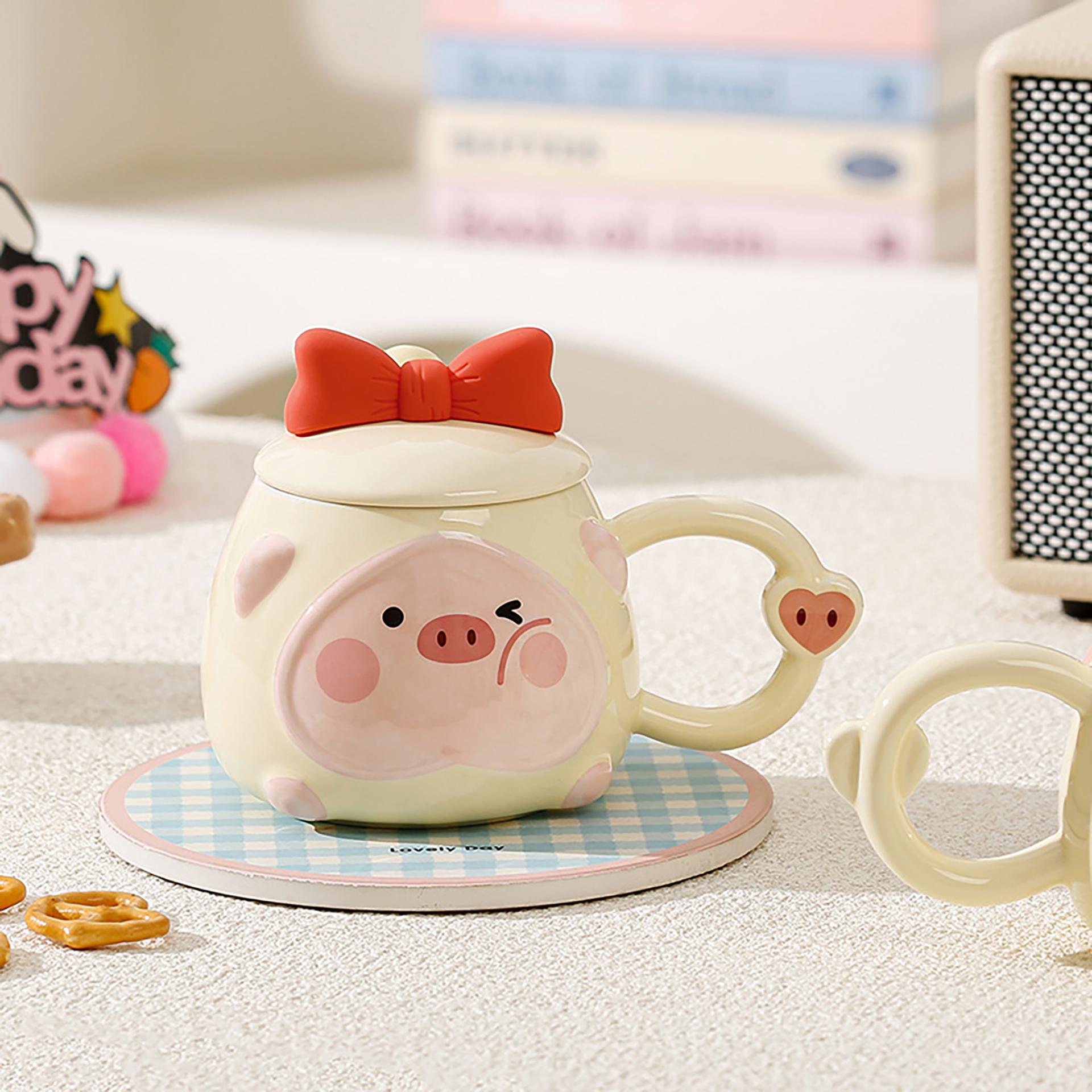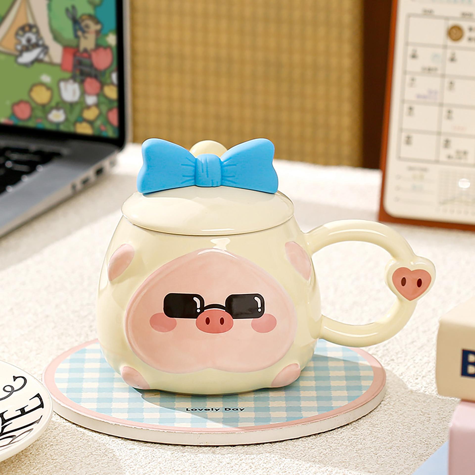 | Production Name | Cute Piggy Ceramic Mug with Lid and Spoon |