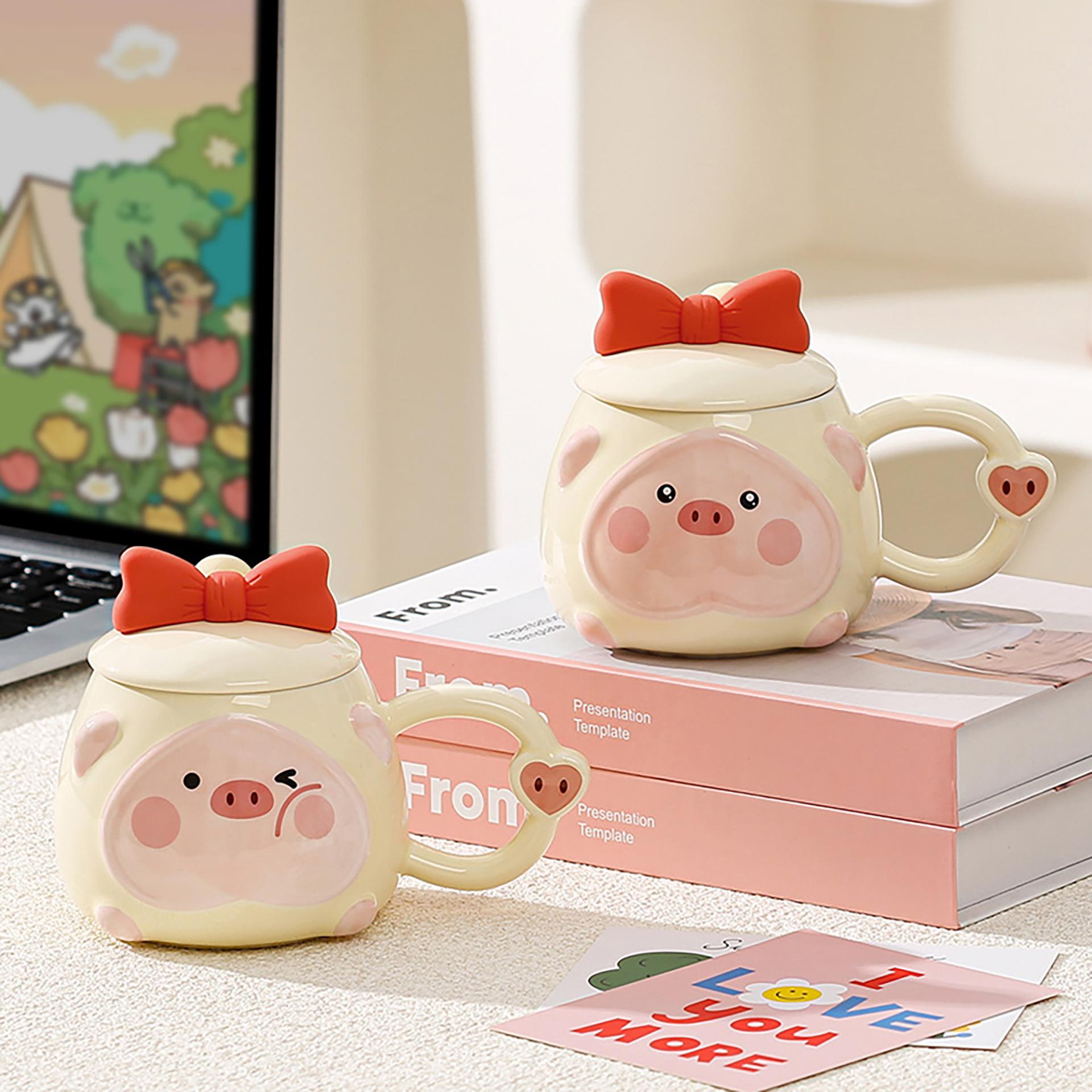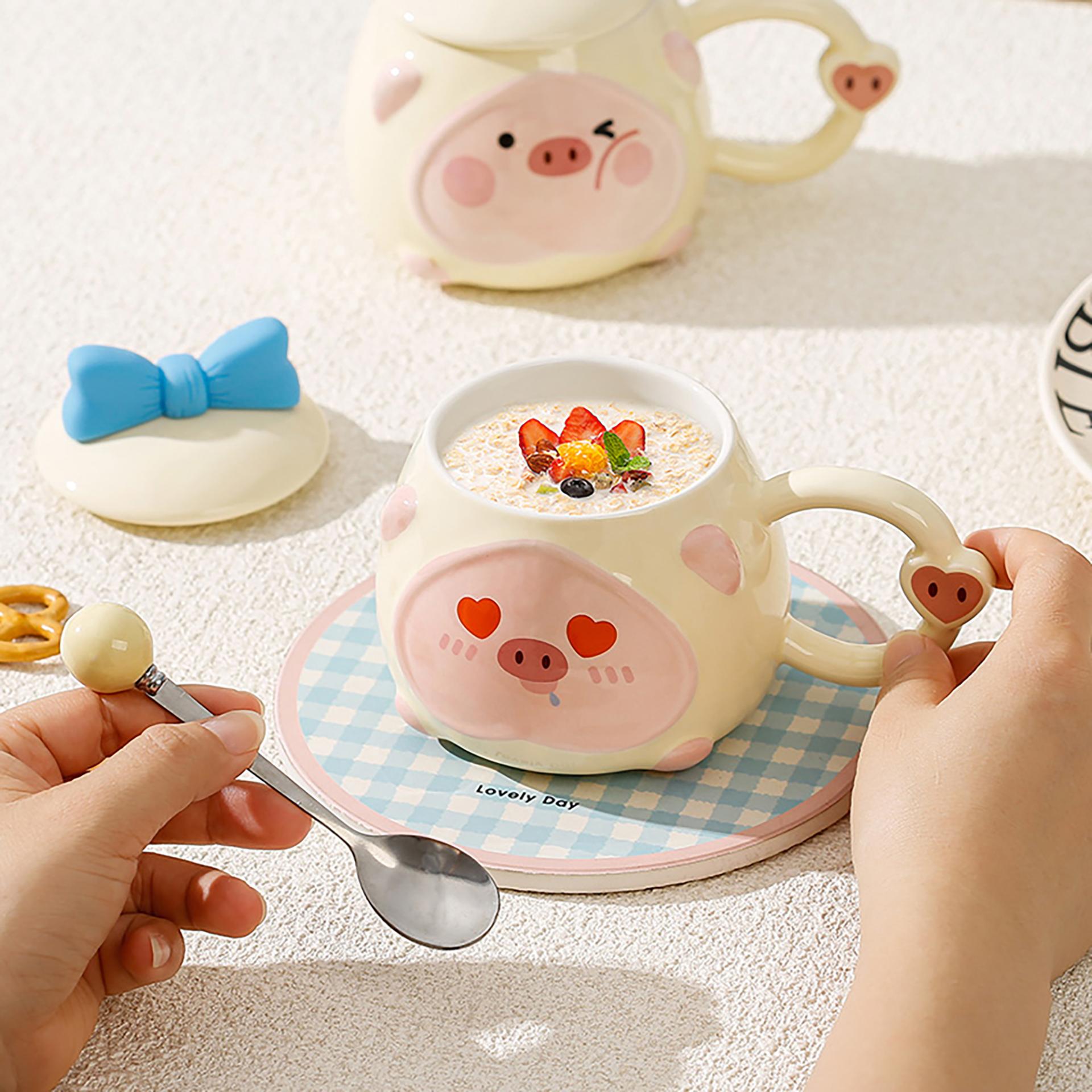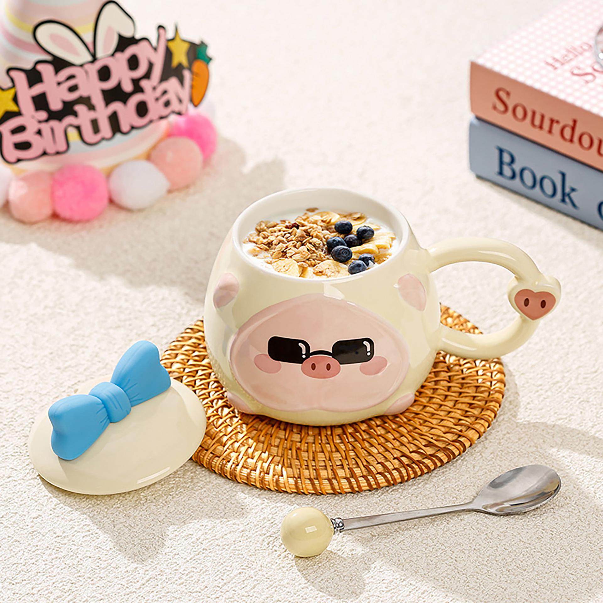 Cute Piggy Ceramic Mug with Lid and Spoon