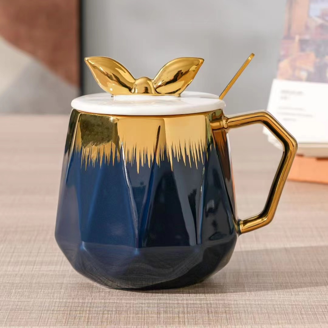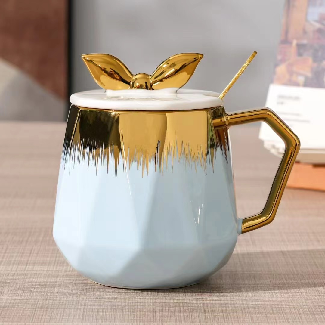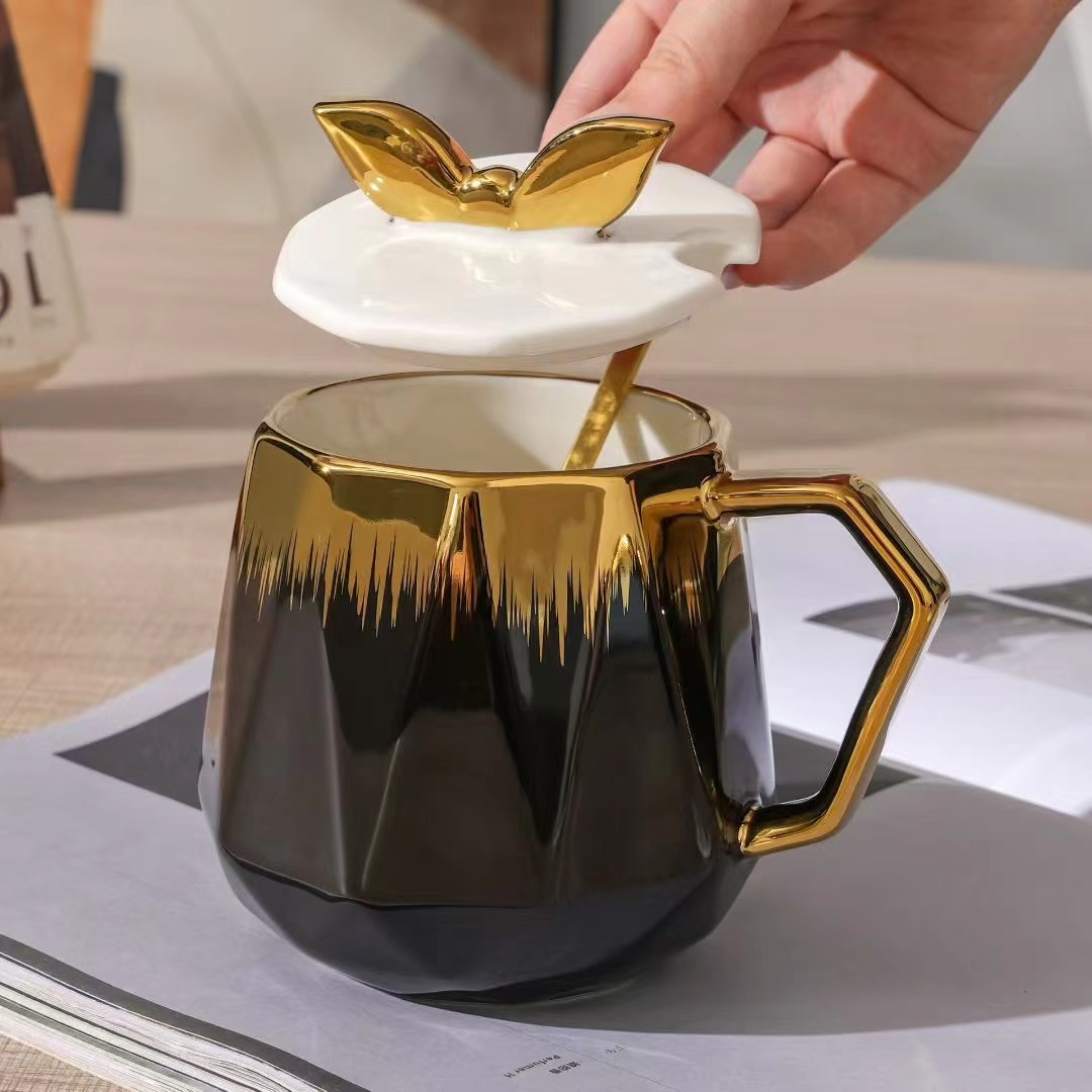 | Production Name | Luxury Electroplating Gold Ceramic Mug with Lid and Spoon |