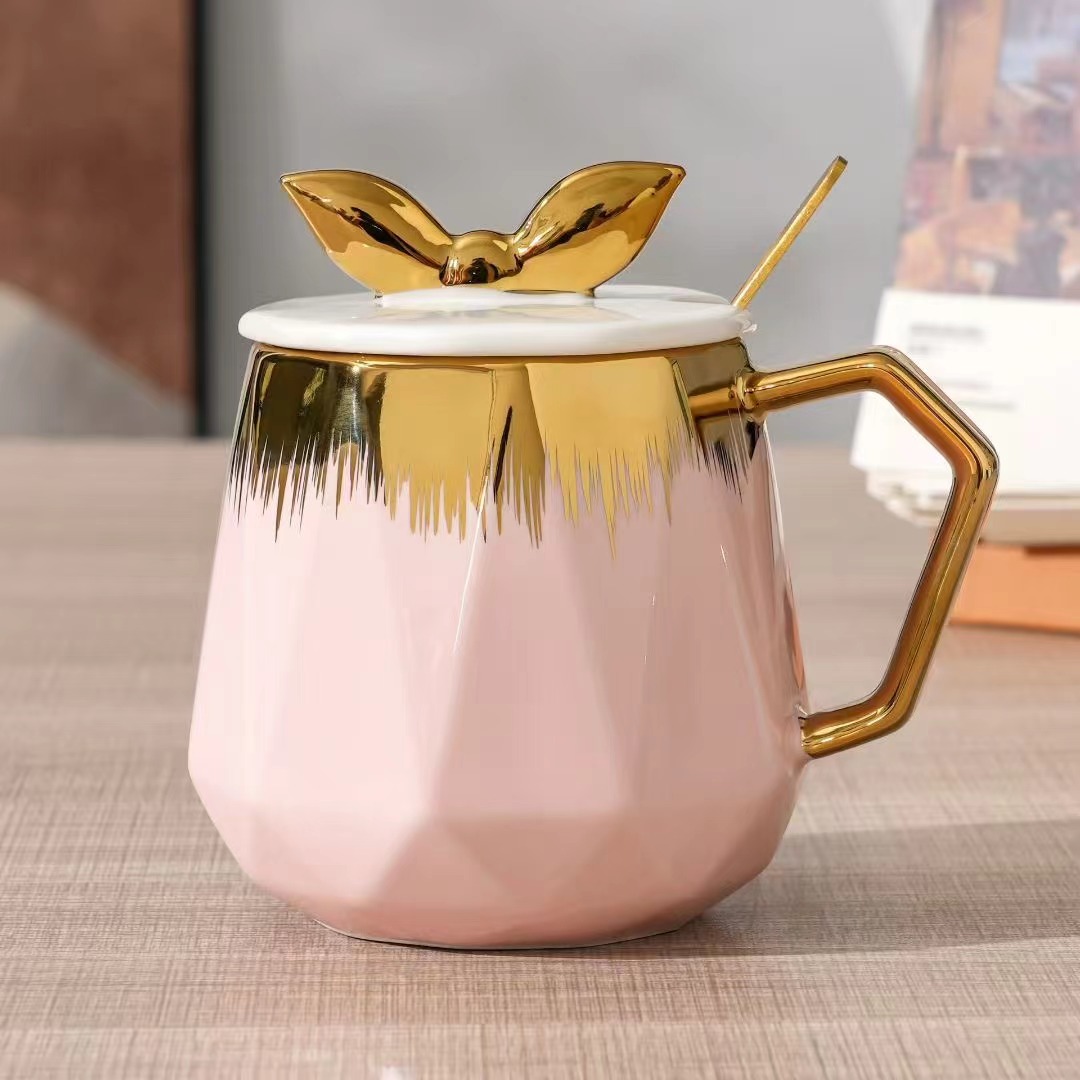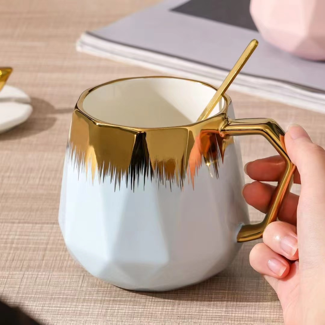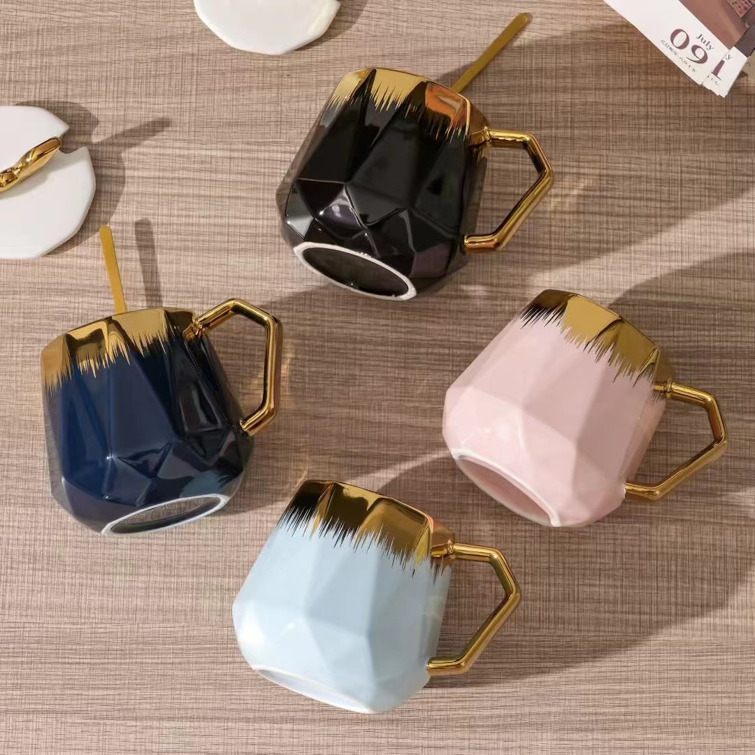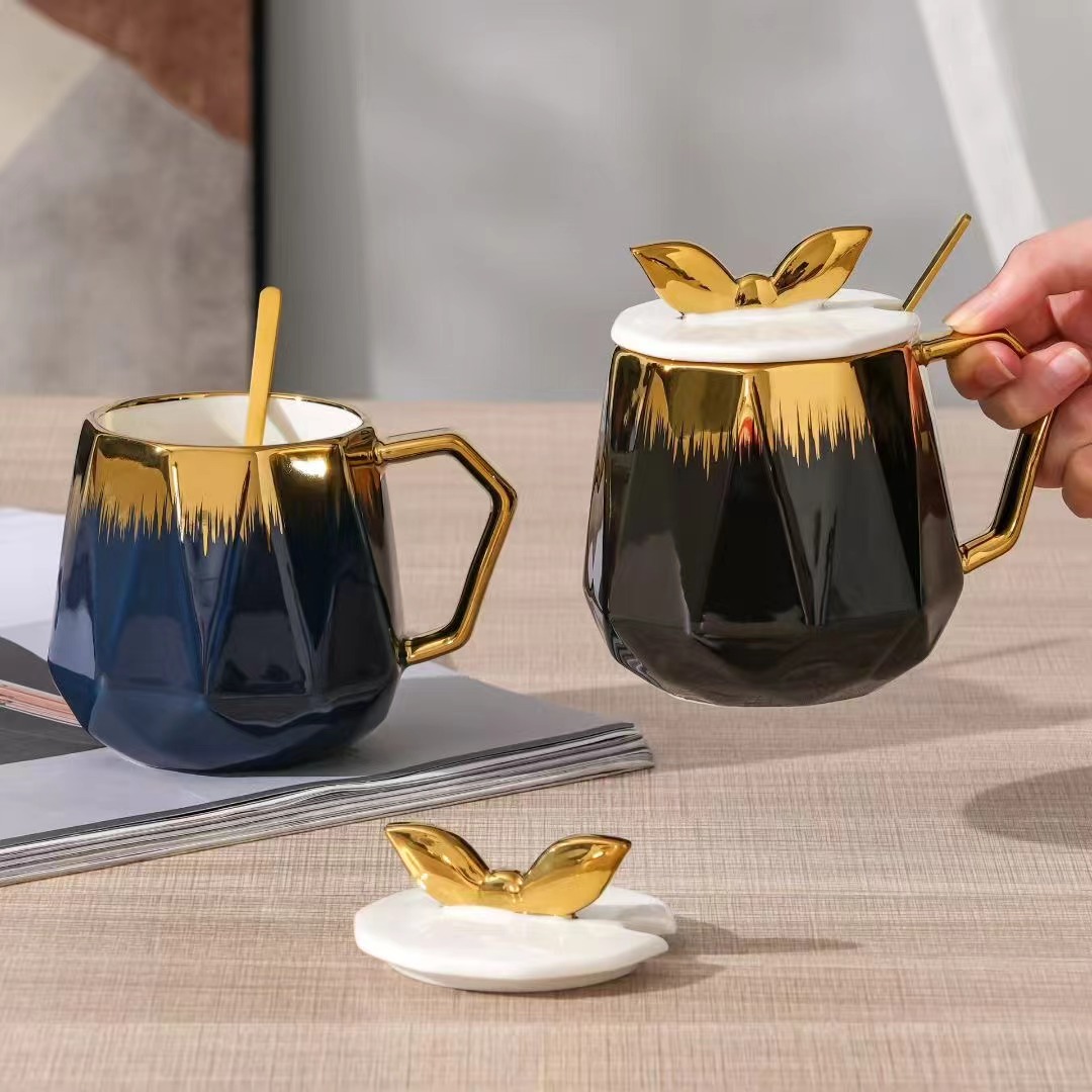 | Production Name | Luxury Electroplating Gold Ceramic Mug with Lid and Spoon |