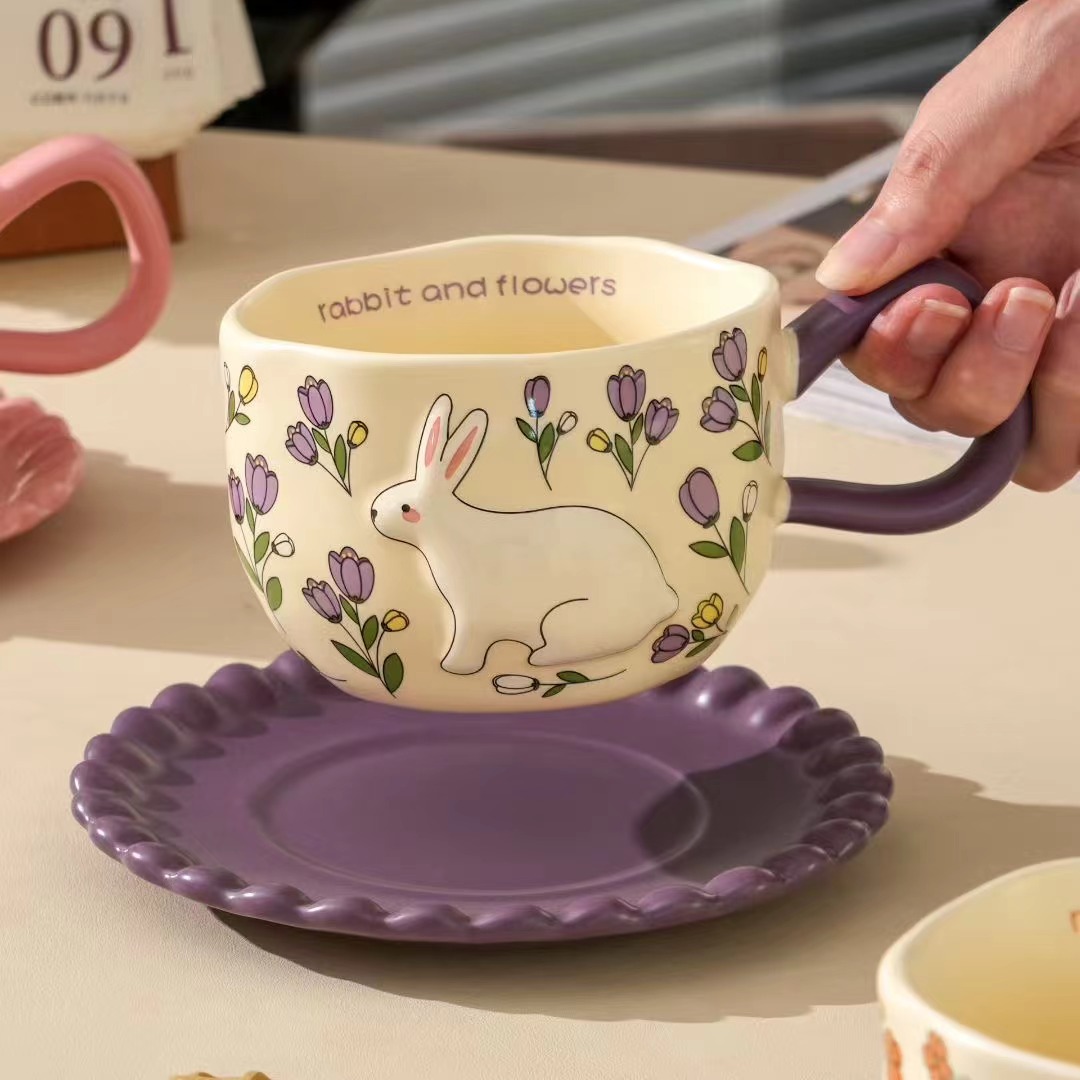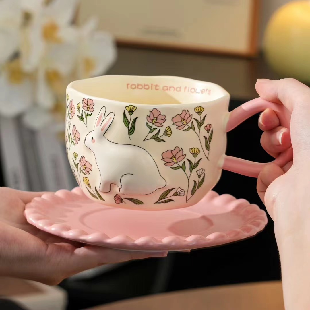 | Production Name | Flower and Bunny Ceramic Cup and Saucer Set |