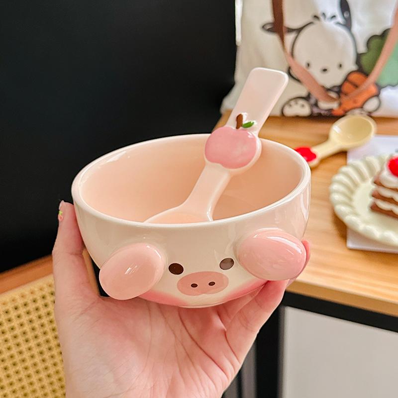 | Production Name | Cartoon Piggy and Puppy Ceramic Bowl with Spoon |