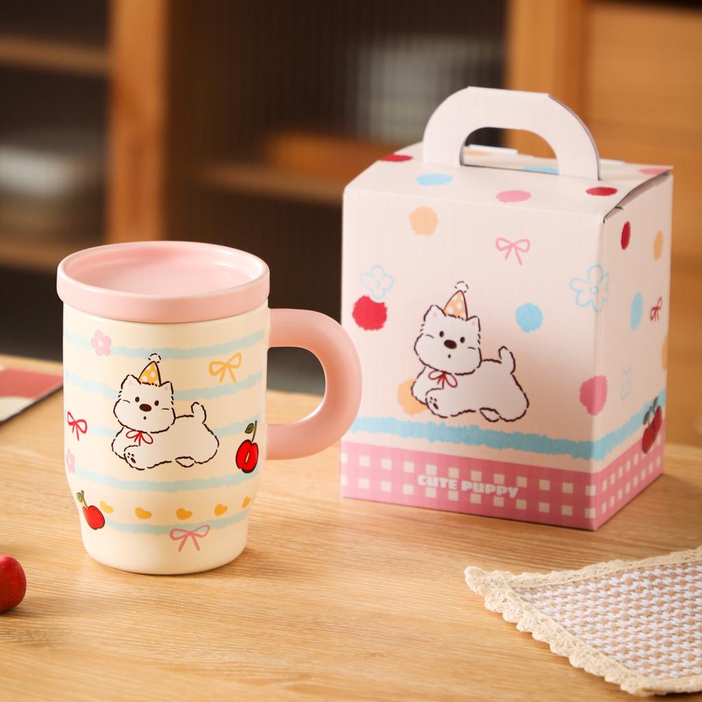 Cartoon Puppy Ceramic Mug with Lid Gift Box