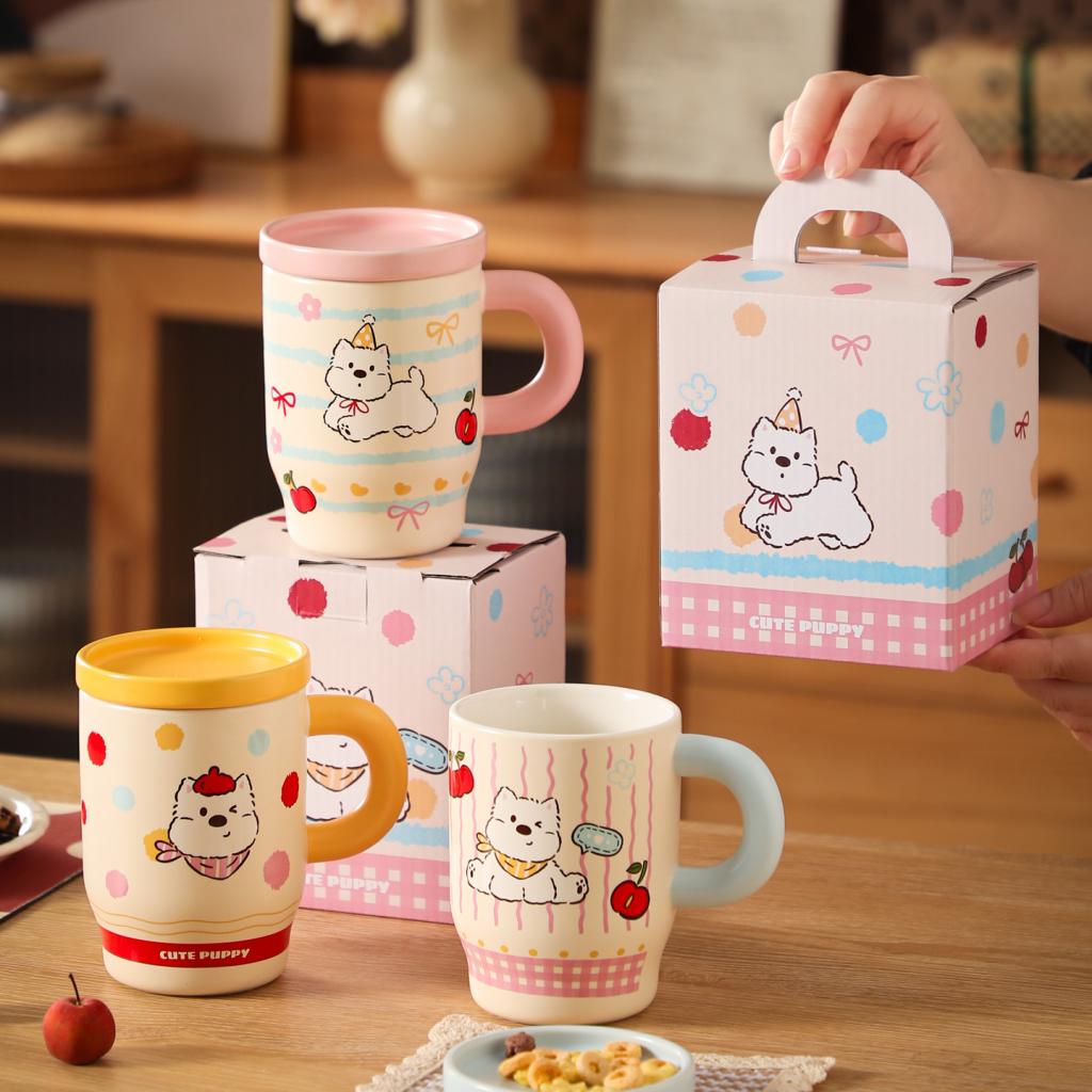 Cartoon Puppy Ceramic Mug with Lid Gift Box