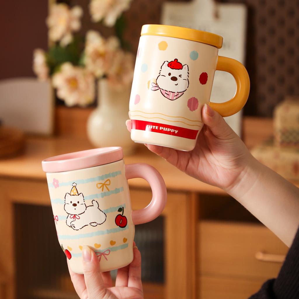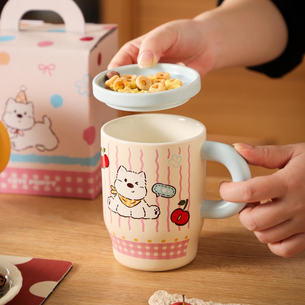 Cartoon Puppy Ceramic Mug with Lid Gift Box