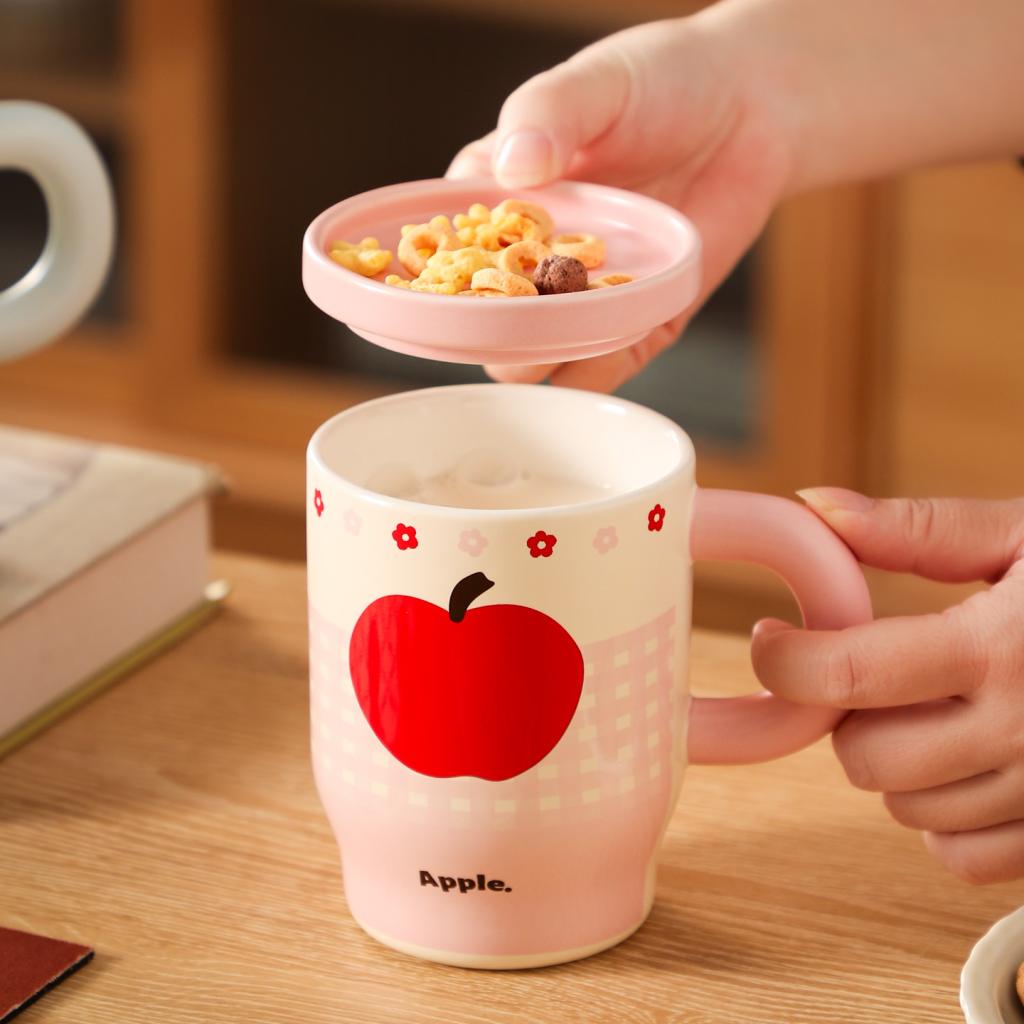 Lovely Apple Ceramic Cup with Lid Gift Box |