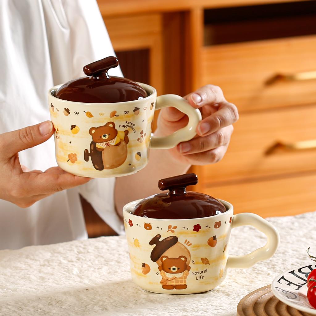 Lovely Chestnut Bear Ceramic Cup with Lid